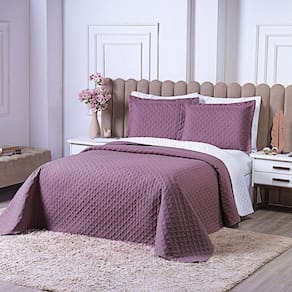 Kit Cobre Leito Milão Queen 3 Peças 100% Poliéster - Rose Cassis / Branco