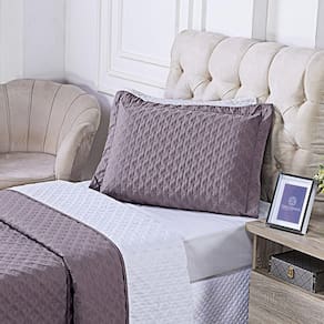 Design Sofisticado: O cobre leito e o porta travesseiro são adornados com um bordado moderno que cria uma textura única e um visual luxuoso.