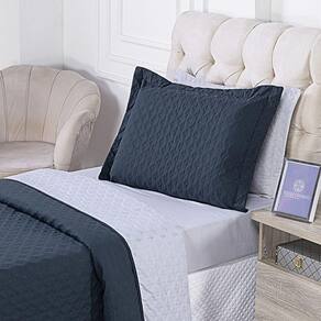Design Sofisticado: O cobre leito e o porta travesseiro são adornados com um bordado moderno que cria uma textura única e um visual luxuoso.
