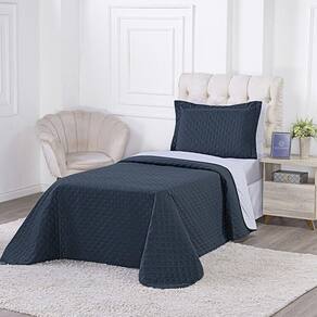 Kit Cobre Leito Milão Solteiro 2 Peças 100% Poliéster - Petroleo / Branco