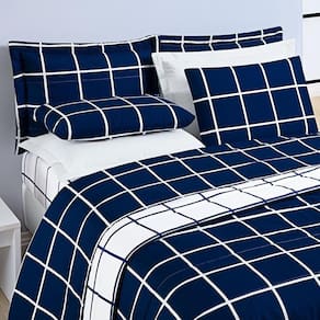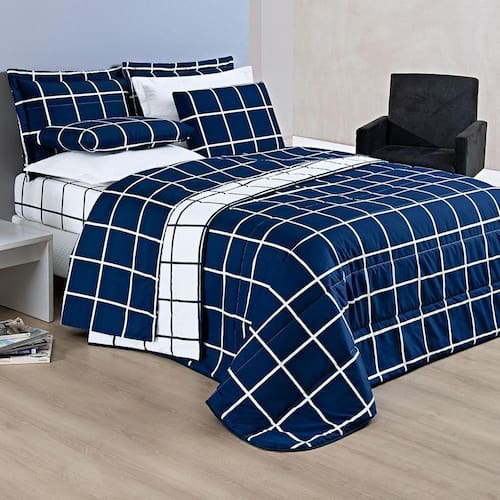 Vista sua cama com o mix de cores e padrões do Kit Minimalista Quadriculado. Levando idade e estilo para a sua decoração, o conjunto possui acabamento e estampas modernas. Além de beleza, o conforto dos seus momentos de descanso são garantidos com o tecido Micropercal 200 Fios.