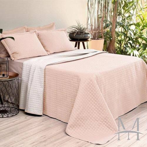 Kit Cobre Leito Plaza Queen 3 Peças Sal Rosa Branco