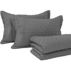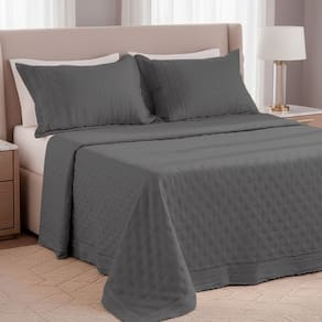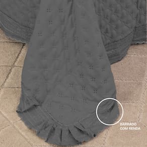 Kit Cobre Leito Queen 3 peças com Bordado Inglês Micro Percal Ultrassônico BF Colchões - Grafite | Cinza