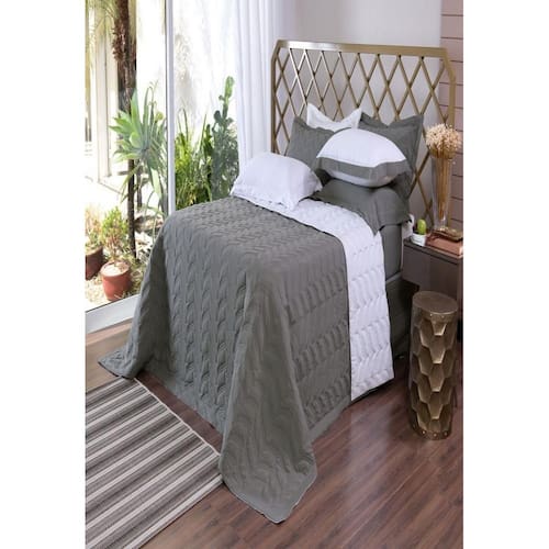 Kit Santorini Queen 3 peças Contém: 1 Cobre leito Queen 235x260 cm e 02 porta travesseiros 50x70 cm Foto meramente ilustrativa Certifique-se em estar adquirindo o produto na cor e tamanho desejados Garantia do fabricante contra defeitos de fabricação
