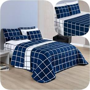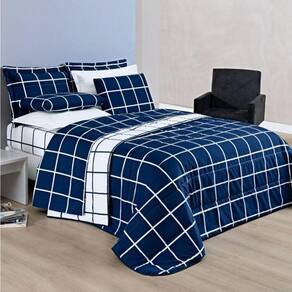 Kit Cobre Leito Solteiro Dustin 200 Fios Com Jogo De Lençol - 5 Peças Marinho