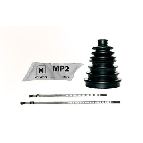 O kit contém 1 coifa elástica, abraçadeiras e um sachê de graxa para lubrificação do sistema da homocinética.