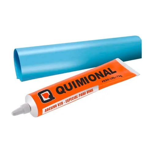 Kit Cola Com Vinil Para Reparo De Piscinas Vinil QuimionalA cola vinil Quimional é um produto especialmente desenvolvido e indicado para colagem de PVC flexível entre si. Ideal para reparos de barracas de camping, lonas, boias infláveis, piscinas, malas entre outros. Possui rápida aderência, flexibilidade e excelente resistência a intempéries.O Kit Cola + Vinil Para Reparo De Piscinas , é perfeito para consertar pequenos acidentes no revestimento vinílico como por exemplo um furo .É possível consertá-lo sem a necessidade de esvaziar a piscina.O Kit Cola + Vinil vai com um pedaço de vinil e uma solda química que reage dentro da água, desta forma o próprio consumidor pode efetuar pequenos reparos no revestimento.Cada tubo cola aproximadamente meio metro quadrado. Contém:Bisnaga de Cola VinilPedaço de Vinil