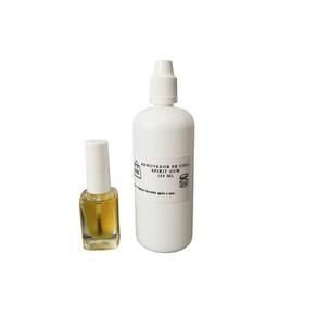 Removedor de cola spirit gum 100 ml Este removedor de adesivo suave é perfeito para dissolver o resíduo pegajoso do spirit gum verniz na pele. Ele irá retirar e remover os resíduos existentes da cola da pele. Após essa remoção indica-se a lavar o rosto com algum sabonete líquido. Ean: 6015638084012