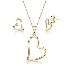 Kit Colar Brinco Pingente Coração Joias Folheada a Ouro 18k