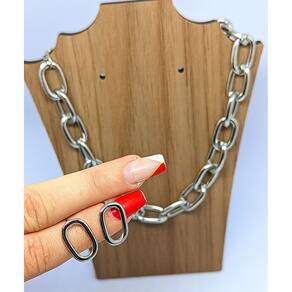 Kit Colar e Brincos Choker Corrente Grossa Elo grande Dourado Folheado Ouro inspiração Blogueira GargantilhaTendência Moda Lançamento 2024