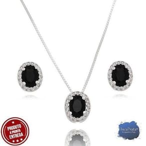 Acompanha: - kit colar e brincos pedra oval preto com zircônias prata - certificado de garantia e legitimidade - embalagem