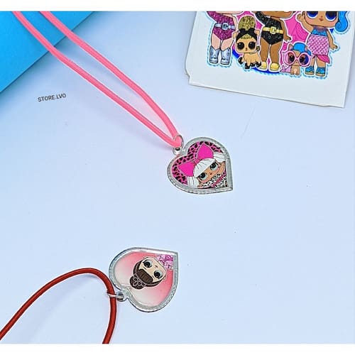 Kit Colar Infantil Menina Menino Duplo Amizades Colares Best Friend com Pingente Super Heróis Frozen Stitch Lembrancinha - Cor: Lol