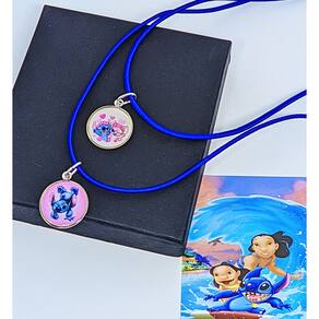 Kit 2 Colares Amizade Best Friend + Pingente Redondo desenho Lilo Stitch Menina Moda Presente Qualidade Premium