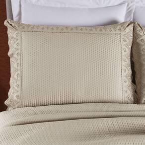 Detalhes Delicados: A colcha e os portas travesseiros são adornados com um lindo acabamento em Bordado Inglês, adicionando um toque de delicadeza e valorizando a decoração.