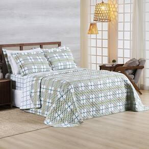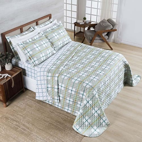 Kit Cobre Leito Colcha Belle Casal Padrão Estampado Dupla Face 400 Fios 3 Peças Grid Verde Transforme o visual do seu quarto com o Kit Cobre Leito Belle, confeccionado em Micropercal 400 fios dupla face, que une a delicadeza do toque acetinado com a resistência e praticidade do tecido de alta qualidade.