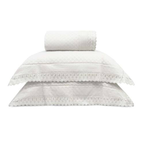 Kit Colcha com Porta Travesseiros Bordare Premium Casal, contendo 01 Colcha 2,20m x 2,40m + 13cm Renda e 02 Porta Travesseiros 50cm x 70cm + 13cm Renda, matelado, extra maciez e rico em detalhes, 100% Poliéster com gramatura de tecido: 85g/m² e enchimento 120g/m². O Kit Colcha com Porta Travesseiros Bordare Premium, é o produto essencial para tornar o quarto e cama convidativos e refinados. Confere maciez especial, além das cores clássicas e acabamento em finíssimo bordado inglês, que entregam muita beleza e conforto, para deixar a cama e o quarto cheios de elegância. By Appel.