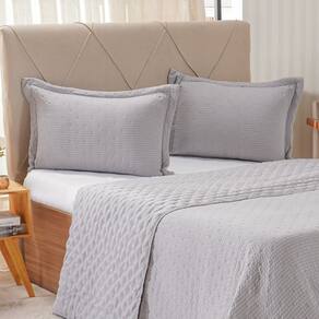 Kit Colcha Casal Santorini New 220x240cm Platina - 100% Poliéster, Frente 90g/m²; Verso 70g/m², Enchimento Super Macio 100g/m²
