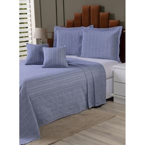Kit Colcha Cobre Leito Cama Queen Tecido Rústico Topázio + Capas de Almofada 5 Peças Cor: Azul O cobre leito Topázio tem design moderno e sofisticado, e vai levar mais elegância e conforto para o seu quarto.