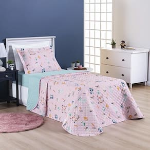 Kit Cobre Leito Colcha Solteiro Infantil Lutti Dupla Face 200 Fios 2 Peças Raposa Foxy Rosa