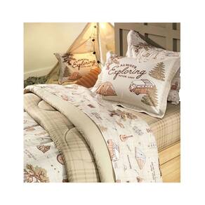 Kit Colcha Infantil Solteiro Aventura 100% Algodão Karsten Colcha Solteiro com Porta Travesseiro 200 Fios 100% Algodão Aventura Descubra o encanto e o conforto do Jogo de Colcha Infantil Aventura Ideal para camas de solteiro, este jogo mede 1,80m x 2,60m e é confeccionado em 100% algodão com 200 fios, proporcionando maciez incomparável e toque suave. Com um tecido encorpado, altamente respirável, antipilling e hipoalergênico, ele garante noites tranquilas e seguras para as crianças. A colcha apresenta design dupla face com cantos quadrados, permitindo variação na decoração do quarto. O porta-travesseiro de 50cm x 70cm acompanha o conjunto, com detalhes elegantes de 3 abas de 5cm. Nas sofisticada cores bege e marrom, o jogo apresenta uma linda estampa com elementos lúdicos e um xadrez no verso, harmonizando perfeitamente com outras peças da mesma linha ou tonalidade e agregando aconchego ao ambiente.