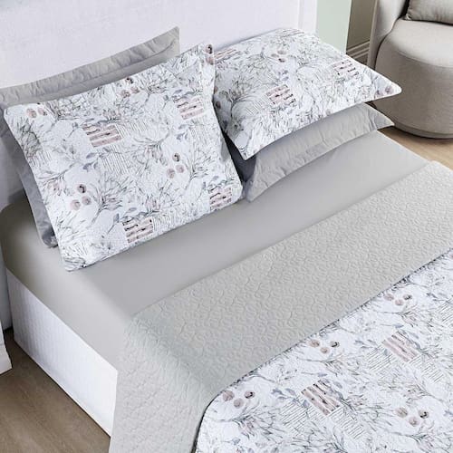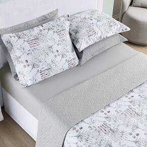 Kit Cobre Leito Colcha Maris Casal Padrão Estampado Dupla Face Percalle 200 Fios 3 Peças Protea Cinza Kit Cobre Leito Maris - Conforto, resistência e beleza em cada detalhe