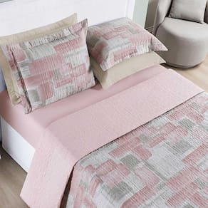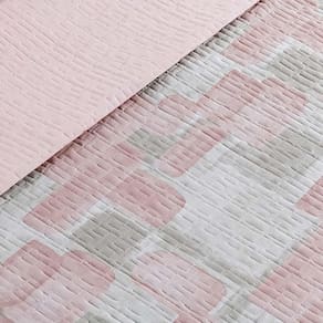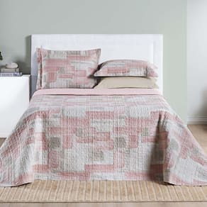 Kit Cobre Leito Colcha Maris Casal Padrão Estampado Dupla Face Percalle 200 Fios 3 Peças Quadri Rosê Kit Cobre Leito Maris - Conforto, resistência e beleza em cada detalhe