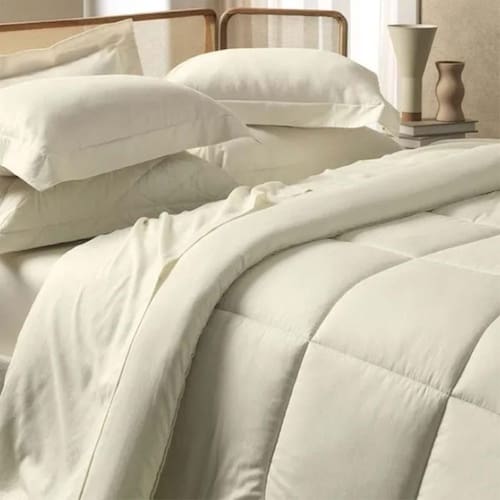 Acabamento Colcha com cantos quadrados; Porta-travesseiro com 3 abas de 5cm; Matelassado; Antipilling; Hipoalergênico; Thermobond; Algodão Egípcio Penteado; Toque Supremo; Altamente respirável; Fácil de passar; Natural; Maleável e com ótimo caimento; Visual com leve brilho Marca: Não Informado
