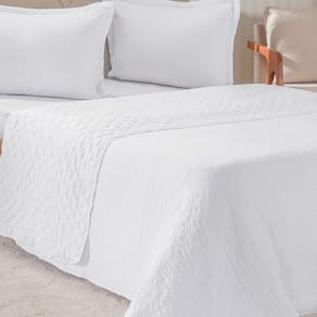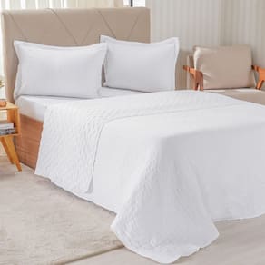 Kit Colcha Queen Santorini New 240x260cm Branco - 100% Poliéster, Frente 90g/m²; Verso 70g/m², Enchimento Super Macio 100g/m²
