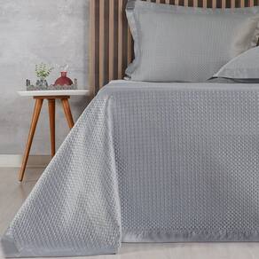 Kit Colcha Queen Satinatta Cetim 100% Poliéster 240x260cm Platina - Cetim Brilhante com Toque de Pele de Pêssego, Matelassê Ultrassonic Diferente em Cada Cor