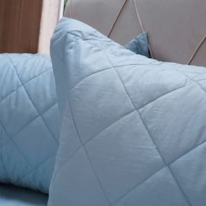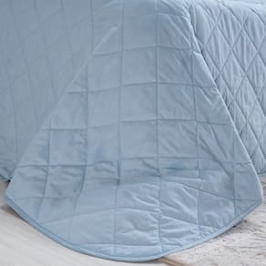Kit Colcha Solteiro 200 Fios Lisa 100% Algodão 160x240cm Bruma Azul -