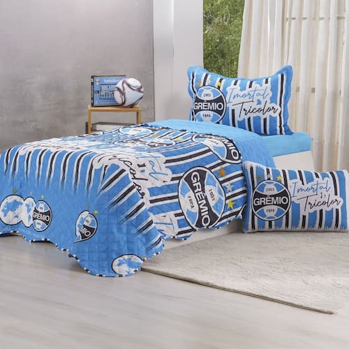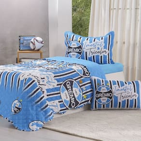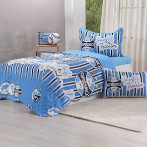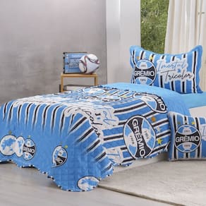 Kit Colcha Solteiro Times de Futebol 100% Poliéster 160x220cm Bene Casa Grêmio -
