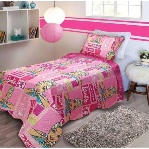 Kit Colcha Ultrasonic Mattel Barbie Dupla Face Solteiro - Jolitex