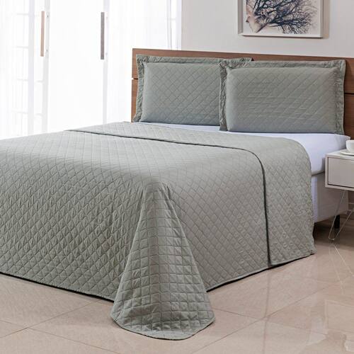 Kit Colcha Ultrassonica Queen 3 peças Basics Cinza Claro -