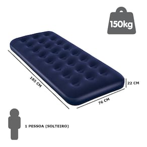 Características: - Material: PVC e Veludo - Medidas: 185 x 76 x 22cm - Macio e confortável - Superficie Avaludada - Válvula de segurança que facilita na hora de encher/esvaziar - Fácil de dobrar e armazenar - Ideal para uso interno e externo - Suporta até 150 kg - Acompanha Bomba de ar manual: Ideal para encher Colchão, Bóia, Piscinas entre outros.