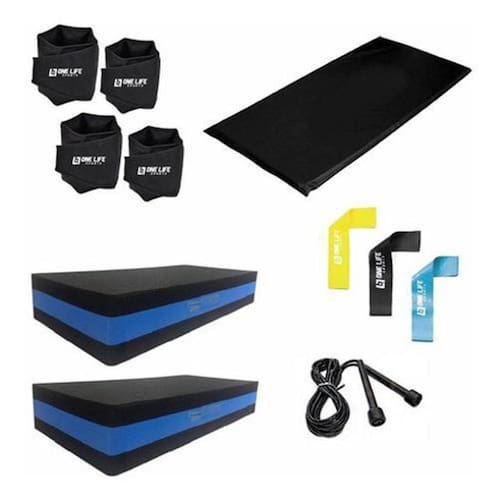 Kit colchonete+caneleira 2 e 4 kg +2 step + corda + kit band Opções: preto O colchonete profissional 90 x 45 x 2 cm é ideal para ter mais conforto na hora de fazer seus exercícios, praticar yoga, pilates ou qualquer exercício funcional. Ele é super prático, fácil de guardar, e é fabricado em espuma de 20 mm com densidade d16, sendo confortável na medida certa. No exterior, é revestido em napa lavável e impermeável, o que facilita quando houver necessidade de higienização e no excesso de suor na prática de exercícios. Você vai se sentir mais confortável para fazer abdominais e outras atividades físicas, além de seu uso ser indispensável para proteger a coluna e evitar lesões. Dados técnicos: Tamanho: 90 x 45 x 2 cm Marca: fitness store Material: revestimento em napa com enchimento em espuma 30mm de densidade d23 Kit composto por: 1- colchonete 90x45x2 cm 1- par de caneleira de 2 kg 1- par de caneleira de 4 kg 2- step de eva 60cm x 28cm x 10cm 1 - corda de pular em pvc 1 - kit mini band