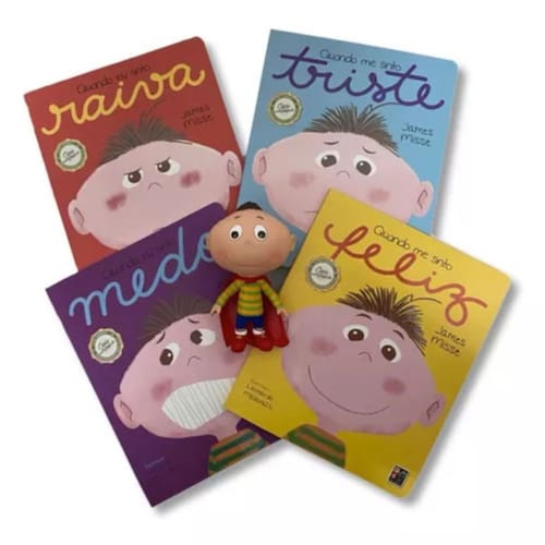A ideia do Coleção Sentimentos e Emoções , é abrir um canal de comunicação para que as crianças e adultos consigam identificar tais sentimentos e aprendam a expressar suas emoções dizendo como se sentem, mas sem deixar de lado a outra pessoa. O escritor James Missé lança um olhar diferenciado sobre o tema e nos desafia a trabalhar nossas emoções e sentimentos para que, assim, possamos ser mais felizes! Recomendado por psicólogos e especialistas. Além disso, vem com uma caixa super personalizada, todos os livros da coleção (medo, raiva, feliz e triste). Não perca! Observação: Coleção chilincada com 4 títulos cartonados + boneco edi feliz Tamanho aproximadamente do boneco. Altura:15cm Largura:10 Espessura:5