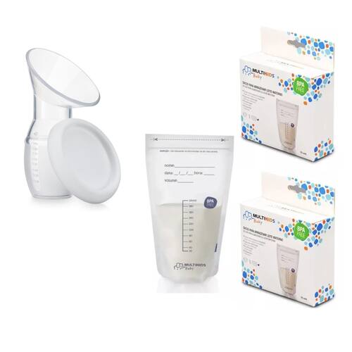 KIT 1 COLETOR DE LEITE + 2 SACO DE ARMAZENAR LEITE MATERNO 50UNI