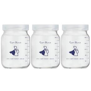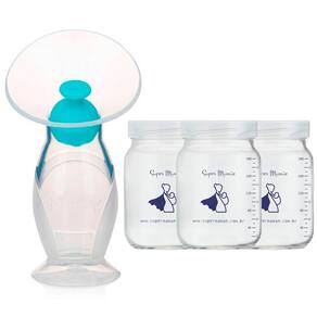 Kit com 1 Coletor de Leite Materno em Silicone com Tampa Nûby e mais 3 Potes de Vidro de 200ml para Armazenar Leite Materno