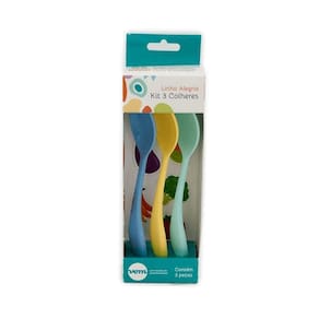 Kit Colher Dolce Vem Verde-azul-amarelo Pp Linha Alegria Kit Colher Infantil Dolce VEM com 03 peças, tem Design arredondado e coloridas, ideais para as refeições da garotada.O conjunto foi projetado para que os pais alimentem suas crianças com segurança e alegria, contribuindo para a estimulação motora ao incentivar a alimentação autônoma dos pequenos.Todos os produtos da Linha Alegria, são seguros, livre de BPA e ftalatos. Produto 100% atóxico, atendendo aos padrões de segurança e testes de saúde da ANVISA no Brasil e FDA dos EUA. O produto é flexível e não deforma, estável e durável, anti-queda, resistente, 100% reciclável. Pode ser levado ao micro-ondas ou freezer. RECOMENDAÇÕES DE USO E LIMPEZA:Não use utensílios de cozinha em metal ou quaisquer objetos afiados que possam riscar o produto. Use somente os objetos apropriados, como as espátulas e colheres de silicone da VEM, que não irão riscar o produto.Lave em água com detergente neutro e enxágue bem ou lave na parte superior máquina de lavar louça;Se os alimentos grudarem, deixe os recipientes cheios com água quente e com detergente neutro;Não utilize esfregões ou esponjas de aço de limpeza, nem detergentes abrasivos, dado que estes irão danificar os recipientes;Especificações Linha do Produto: AlegriaO KIT CONTÉM: 3 colheres DolceCor: Verde-Azul-AmareloMaterial: Polipropileno