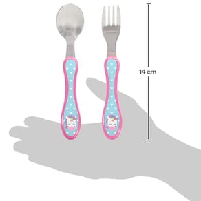 Esse conjunto foi desenvolvido para o momento de introdução alimentar do bebê, para tornar essa experiência muito mais divertida e prazerosa para a criança e para você! Composto por colher e garfo em formato anatômico, esses talheres possuem um design especialmente pensado para as mãozinhas dos bebês que querem se alimentar sozinhos, e para facilitar a vida de mamães e papais que vão servir a refeição para a criança. Fabricados em Aço Inox de excelente qualidade, os cabos são desenvolvidos em Borracha Termoplástica e Polipropileno de alta resistência, garantindo assim mais durabilidade para os talheres. Perfeito para servir papinhas, frutas, sopas, e o que mais você desejar, o kit é atóxico e BPA Free, ou seja, não possui nenhuma substância nociva a saúde do bebê, sendo seguro para qualquer refeição do dia, desde o café da manhã, até o jantar.