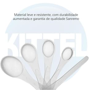Kit colher medidora plástico atóxico 4 cl nivelador sanremo jogo 4 colheres medidoras + nivelador plástico sanremo O conjunto de colheres medidoras com 5 peças da sanremo é feito para você acertar nas receitas e não passar das medidas. São quatro colheres e um nivelador que alinha o conteúdo e indica a medida com precisão. Esse kit não pode faltar na cozinha de quem adora uma receita ou então de quem trabalha com gastronomia e além de tudo, é fácil de lavar Conjunto de colheres medidoras plásticas sanremo. 1 colher 15ml 1 cl sopa . 1 colher 7,5ml cl sopa . 1 colher 5ml 1 cl chá . 1 colher 2,5ml cl chá . 1 nivelador. Garanta já seu kit