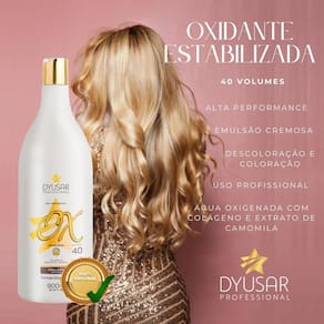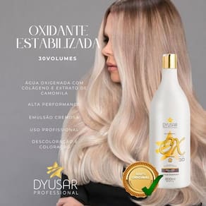 As oxidantes estabilizadas ou água oxigenada da dyusar professional possuem fórmula estabilizada, cremosa e perfumada, além de proporcionar uniformidade e brilho. Modo de uso: misturar a emulsão oxidante com a tintura ou descolorante, conforme as proporções de diluição aconselhadas para cada tipo de produto. Cuidados: contém substâncias passíveis de causar alergia na pele. Antes de usar, faça a prova de toque. Não usar nos cílios e sobrancelhas pois pode causar irritação nos olhos ou cegueira. Não aplicar se o couro cabeludo estiver irritado ou lesionado. Em caso de contato, enxaguar com água abundantemente. Manter fora do alcance das crianças. Evitar exposição ao sol. Contém peróxido de hidrogênio. Usar luvas adequadas. Usar luvas apropriadas. Respeitar o tempo de pausa. Não utilizar ferramentas metálicas. Tempo de uso: até 50 minutos. Este produto deve ser utilizado apenas por um profissional cabeleireiro. Prova de toque: aplicar pequena quantidade no antebraço ou atrás da orelha. Deixar sobre a pele uma hora. Em seguida enxaguar o local. Aguardar 24 horas. Caso surja sinais de irritabilidade, não utilizar o produto.