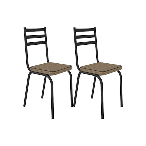Kit Com 02 Cadeiras 118 Preta Corino Rattan Artefamol - Marrom