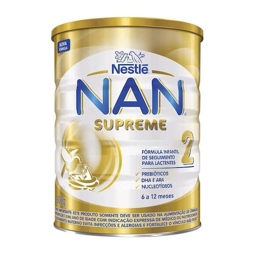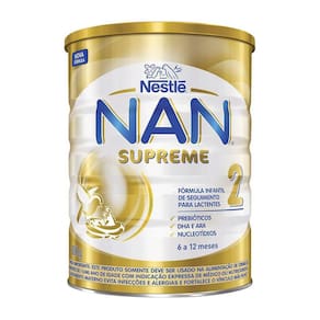 Descrição: Nan supreme 2 é uma fórmula infantil de seguimento para lactantes a partir de 6 meses. Possui um mix de gorduras que incui os ácidos graxos essenciais, além de vitaminas e minerais. E proteína nestlé parcialmente hidrolisada super premium. Fórmula infantil para lactentes de 6 a 12 meses de idade. Com prebióticos, dha, ara e nucleotídeos. Não contém glúten. O ministério da saúde informa: o aleitamento materno evita infecções e alergias e é recomendado até os 2 dois anos de idade ou mais. Ean: 7613034968005