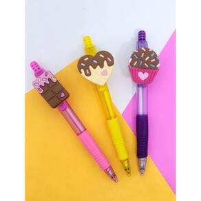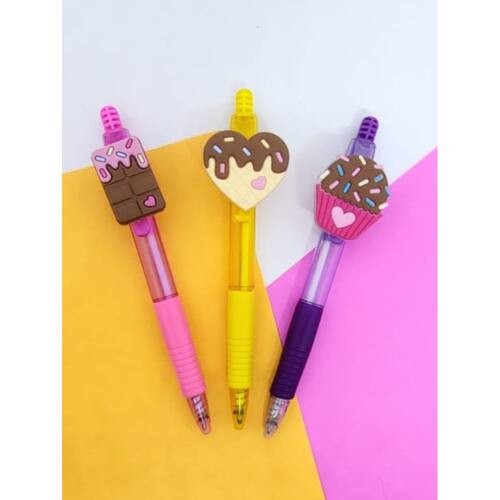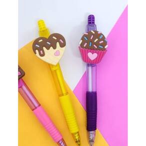 Kit com 03 Canetas Esferográficas com aplique ponta médiaescrita maciaTINTA AZUL