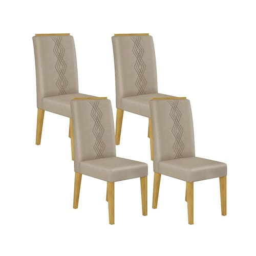 Características: Estrutura em MDF/ MDP Espaldar de MDF revestido com pega Bordado no encosto Sapatas deslizadoras Densidade da espuma do assento D20 / Encosto D13 Suporta até 130 kg