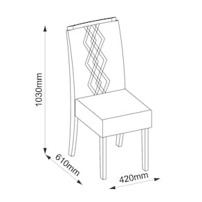 Características: Estrutura em MDF/ MDP Espaldar usinado em MDF Bordado no encosto Encosto com curvatura ergonômica Densidade da espuma do assento D20 / Encosto D13 Suporta até 130 kg