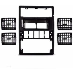 Especificações Técnicas: - Produto Importado de Excelente Qualidade; - Fabricado em Plástico; - Cor: Preto. Composto por: - 04 Difusores de Ar - Sem Diferença de Lado. - 01 Moldura Central do Painel. Atenção: - Não acompanha botões, acabamentos e nada que não esteja sendo apresentado nas imagens do anuncio. Compatível com os Modelos: - Gol G2 Bola de 1995 até 1999 - Parati G2 Bola de 1995 até 1999 - Saveiro G2 Bola de 1997 até 1999