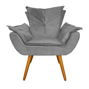 Kit Com 1 Poltrona e 1 Puff Para Quarto Sala Salão Apolo Suede Cinza - LM DECOR