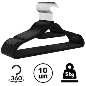 Estrutura Slim Ultrafina: Economiza espaço no armário, permitindo guardar mais peças.Revestimento Aveludado Antiderrapante: Impede que as roupas deslizem e mantém o formato delas.Material Resistente e Durável: Suporta diferentes tipos de peças, incluindo casacos Metálico Giratório: Facilita o ajuste e a disposição das roupas no cabideiro.